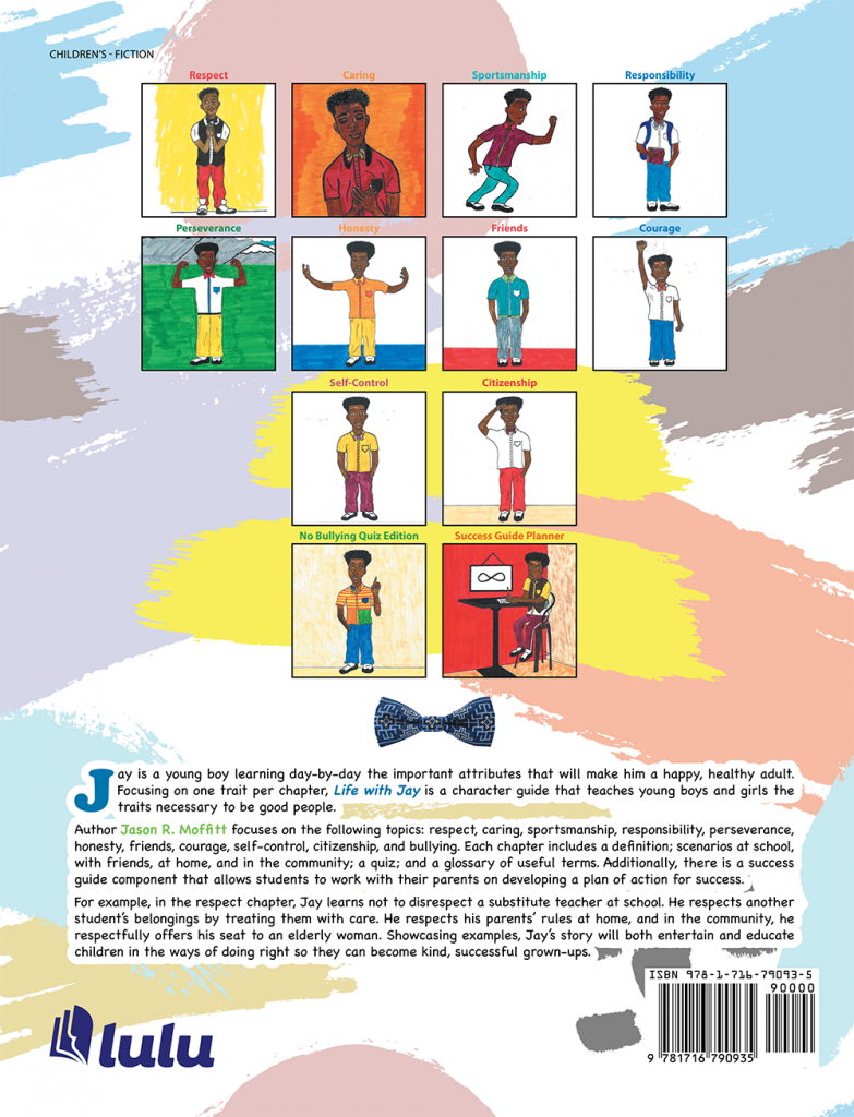 For example, in the respect chapter, Jay learns not to disrespect a substitute teacher at school. He respects another student’s belongings by treating them with care. He respects his parents’ rules at home, and in the community, he respectfully offers his seat to an elderly woman. Showcasing examples, Jay’s story will both entertain and educate children in the ways of doing right so they can become kind, successful grown-ups.